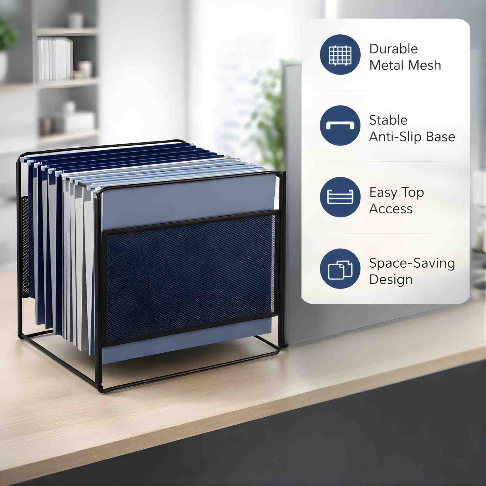 Bring order and efficiency to your workspace with the FileFlow Mesh Organizer – a sleek and functional storage solution designed for modern professionals. Crafted from high-quality, powder-coated metal mesh, this file holder is built to last while maintaining a minimalist, contemporary look.