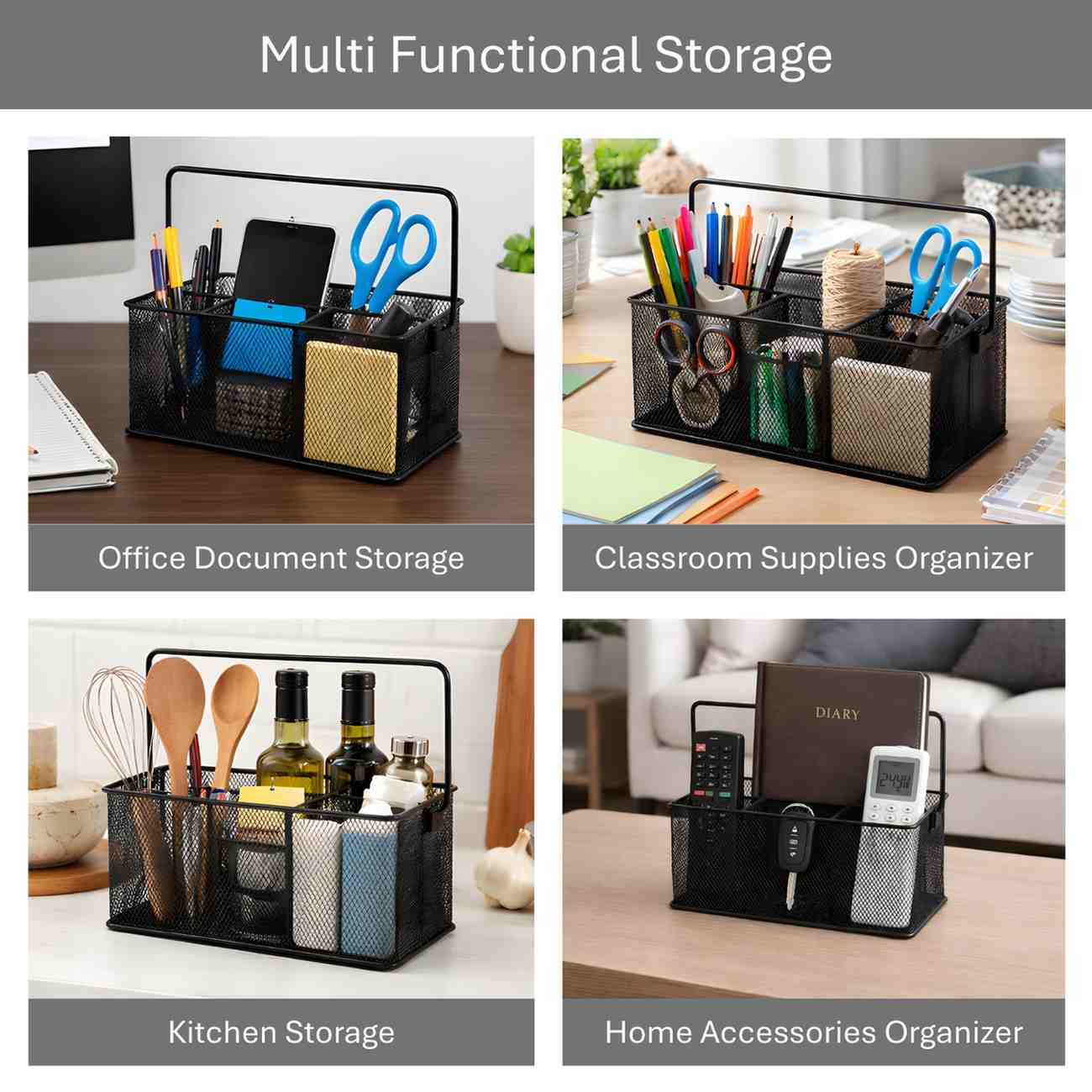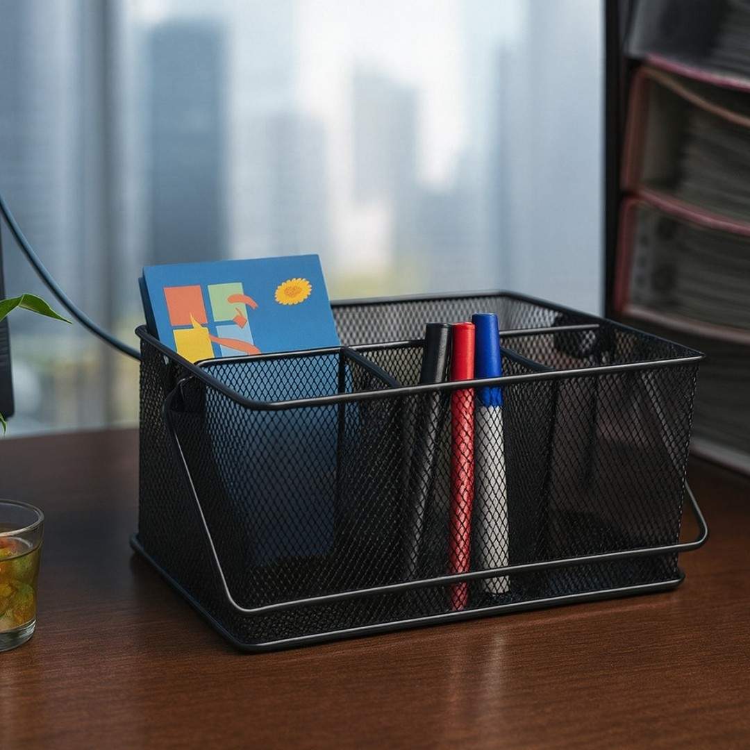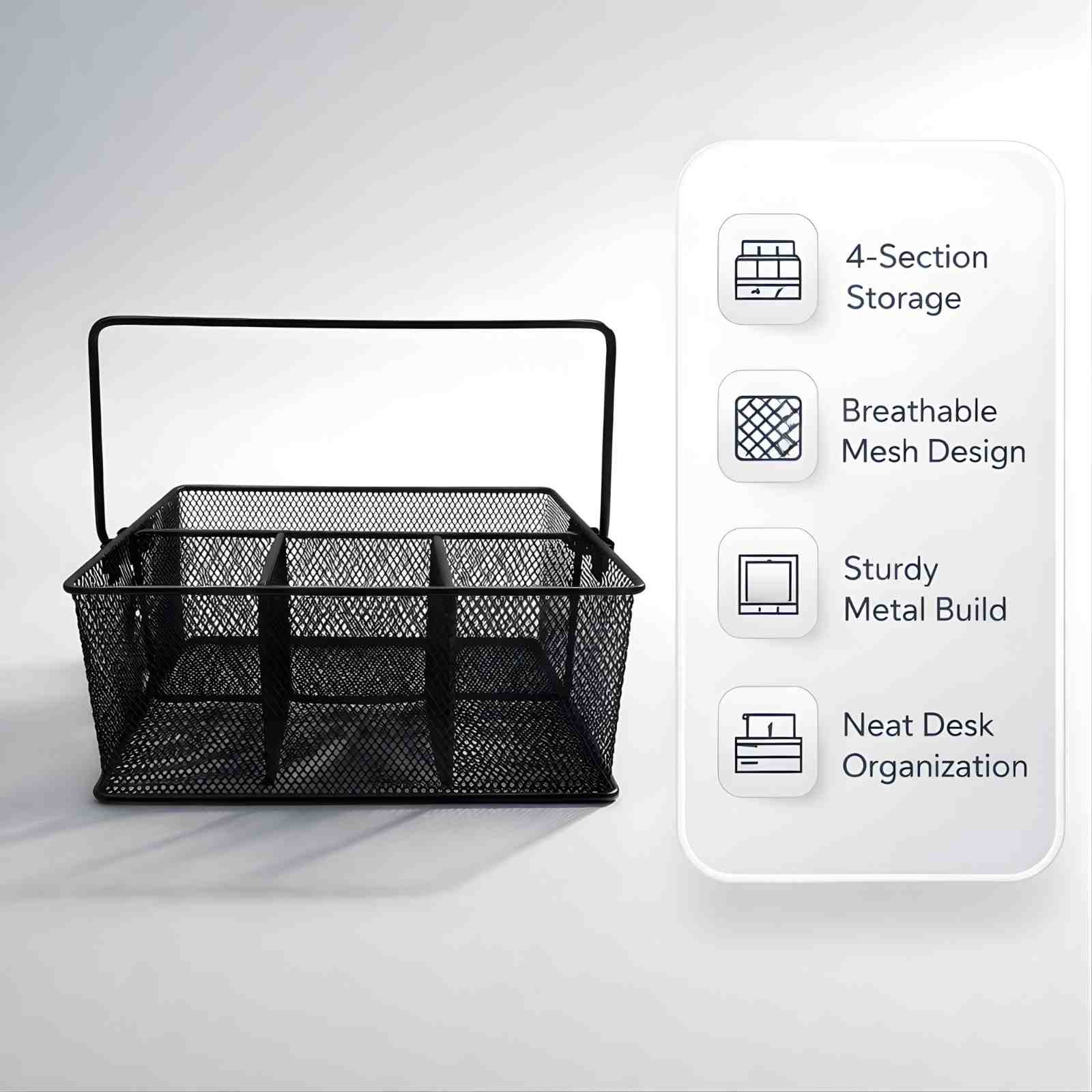 With multiple compartments, the caddy effortlessly stores pens, pencils, scissors, markers, sticky notes, and other desk supplies, so your workspace remains clutter-free and productive. Its lightweight yet sturdy design makes it easy to move, while the breathable mesh construction ensures easy cleaning and long-lasting durability.