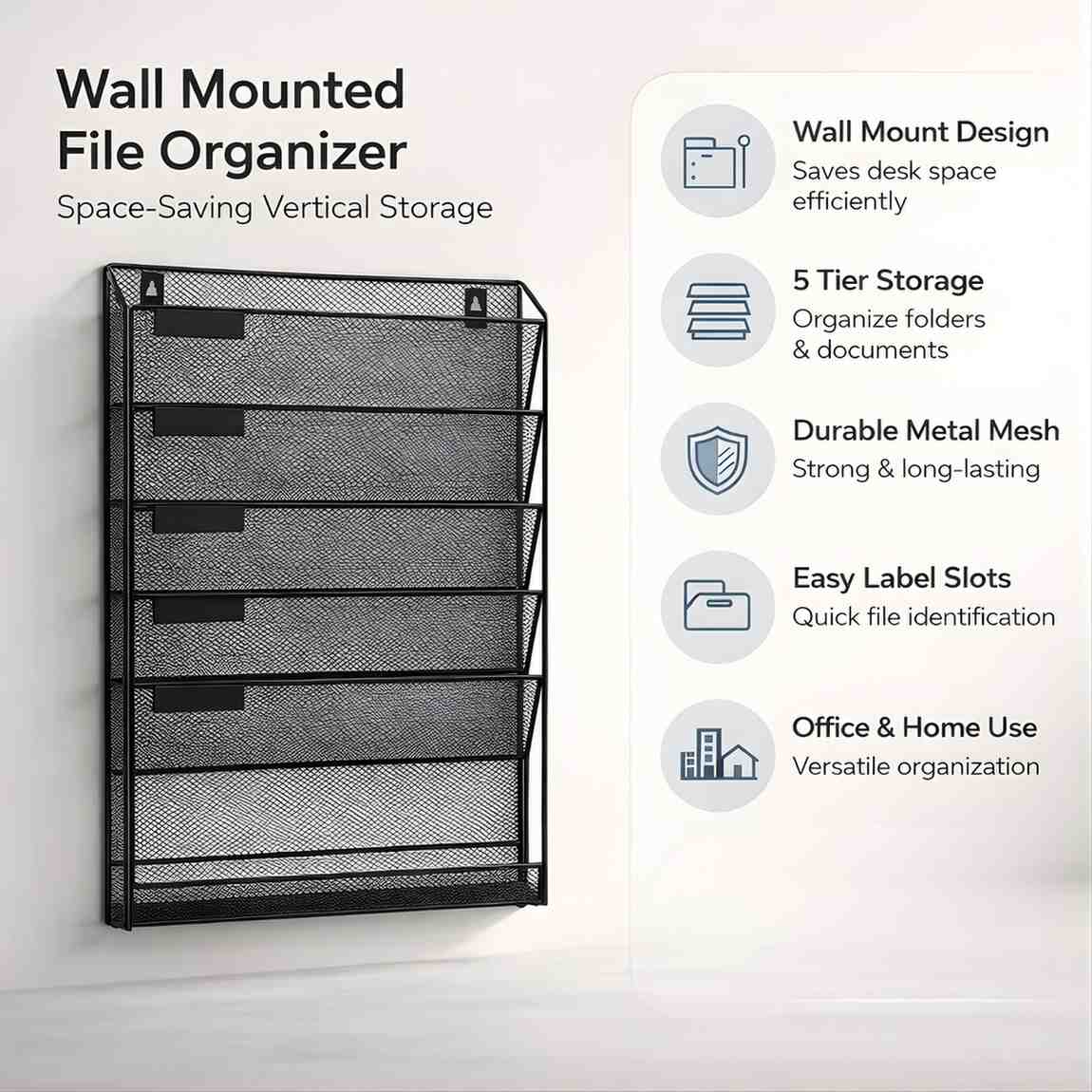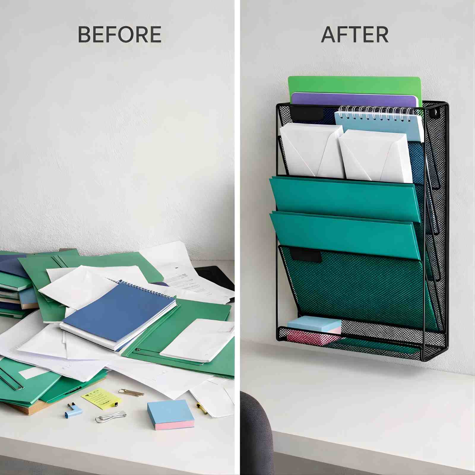 Whether for the office, home, or study, this wall-mounted organizer turns piles of paper into neat, structured categories — boosting both productivity and peace of mind.