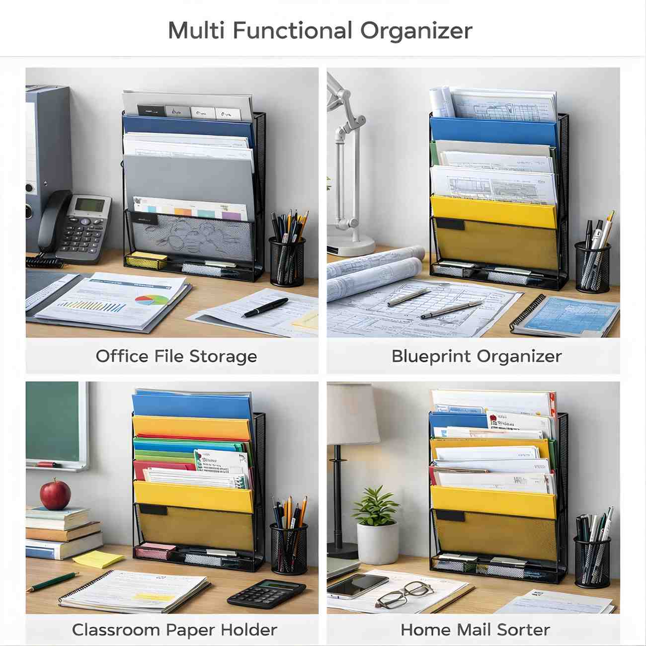 Its vertical design saves desk space, making it an ideal choice for compact areas. The multiple slots lets you categorize and separate your documents, ensuring quick access whenever you need them. With smooth mesh walls, it stays dust-free and is easy to clean, keeping your space looking tidy and professional.
