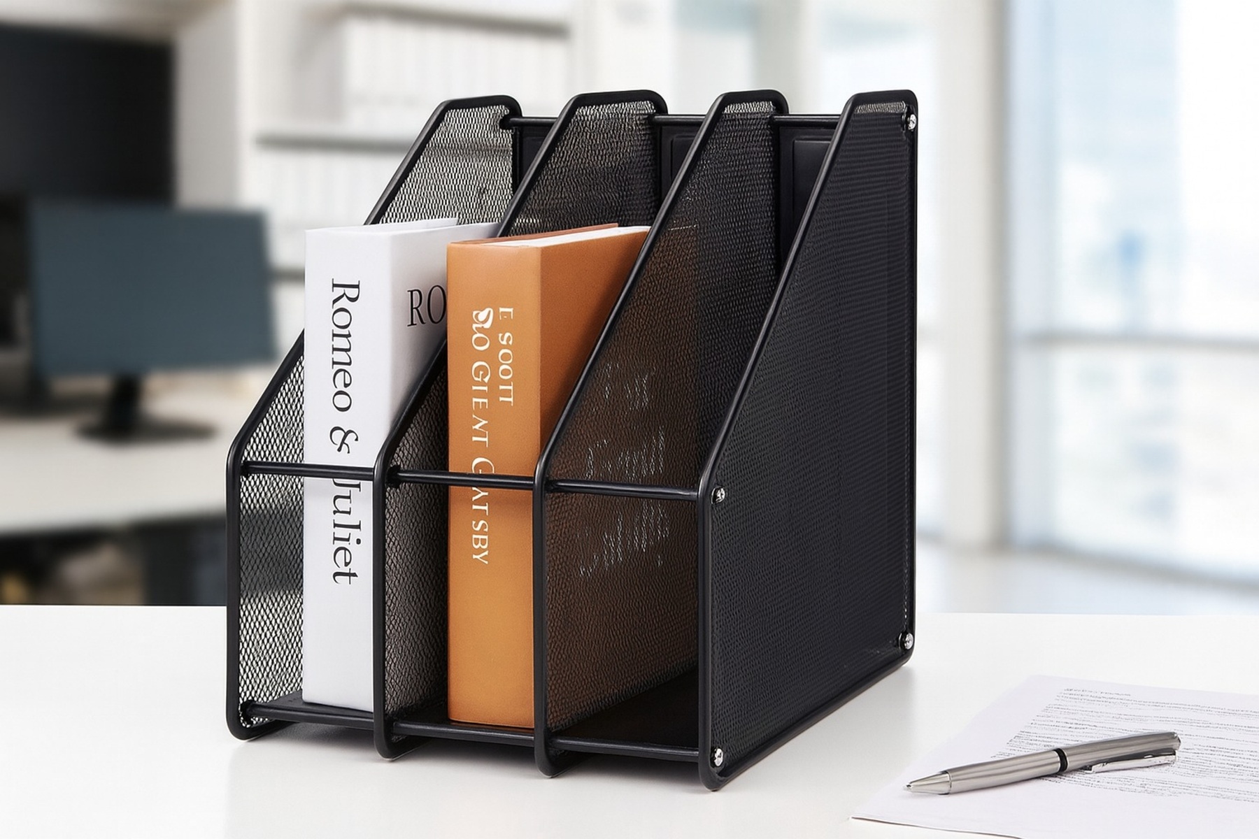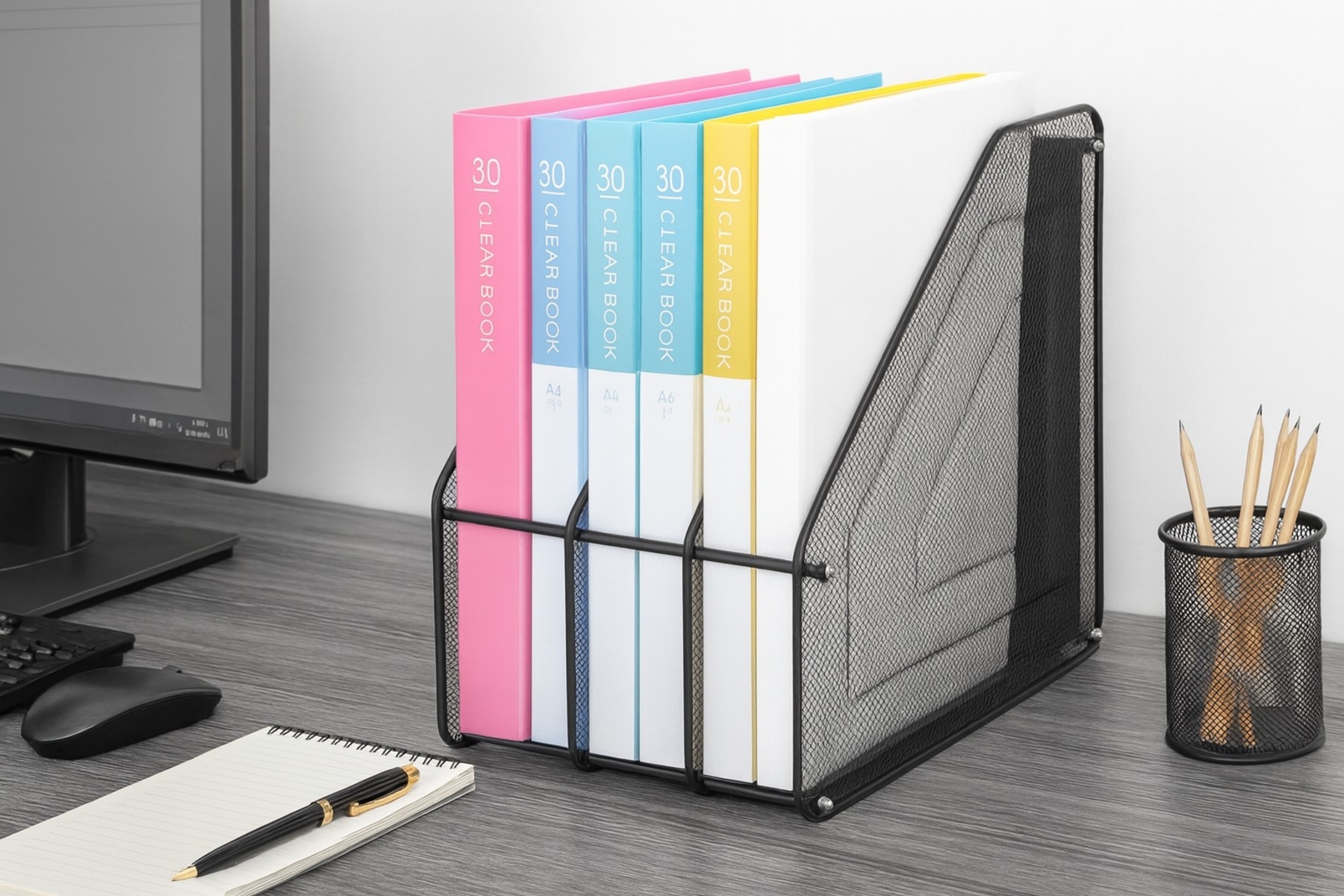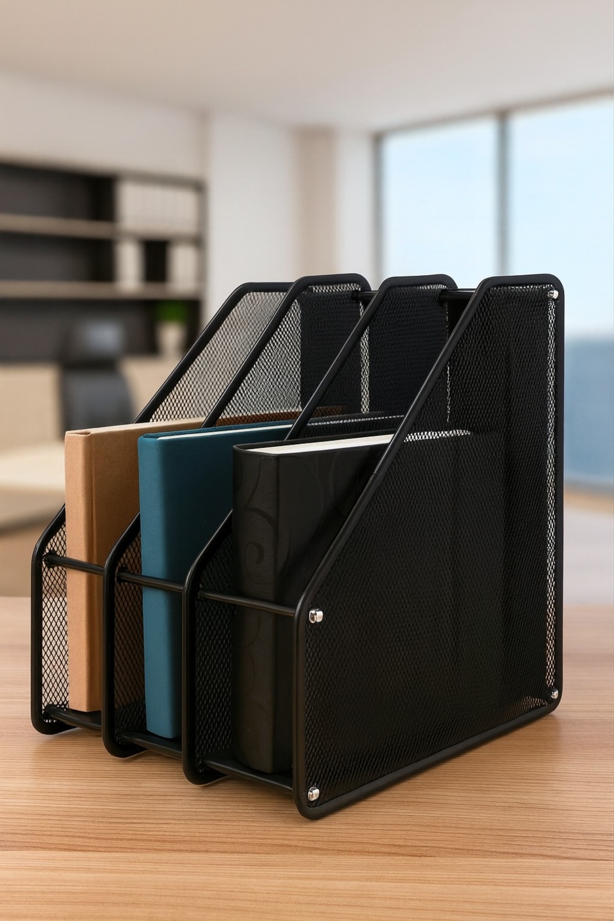 Keep your workspace neat, structured, and stylish with the NeatDesk 3 section organizer— a 3-slot vertical organizer designed to simplify your daily workflow. Crafted from durable metal mesh, this sleek organizer combines functionality with modern design, making it an essential addition to any office, study, or home workspace.