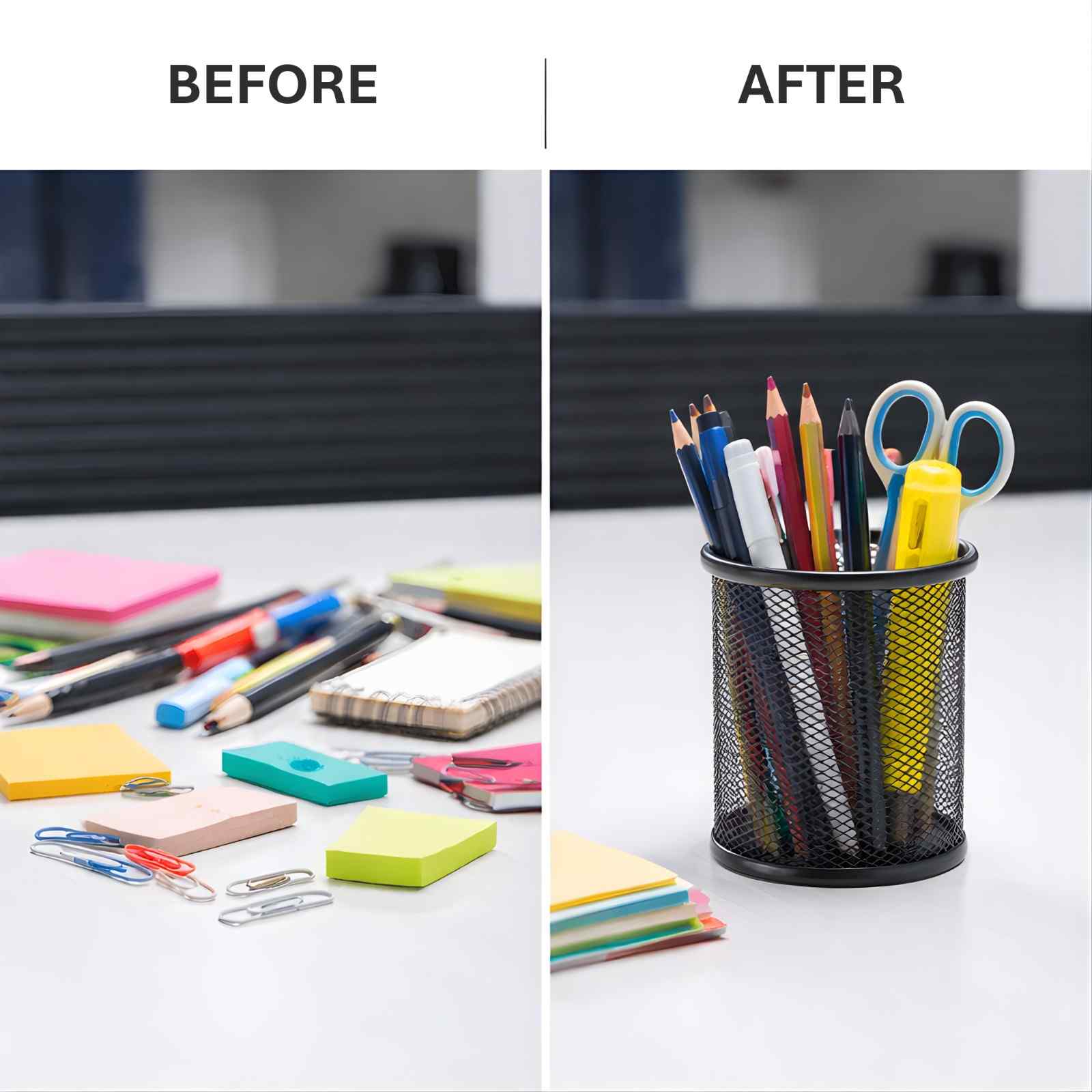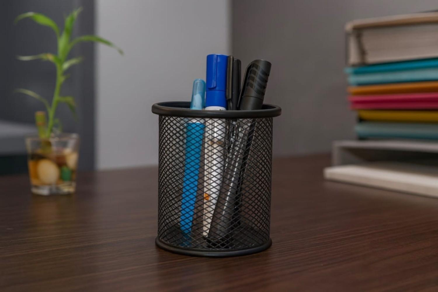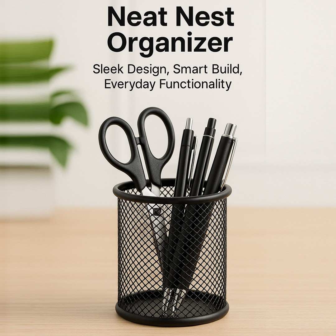 Keep your workspace neat, stylish, and clutter-free with the NeatNest Organizer. Designed with a sleek black steel mesh finish, this compact organizer is the perfect solution for storing pens, pencils, markers, highlighters, and other small essentials. Its minimalist yet durable design ensures it blends seamlessly into any office, study, or home setting while keeping everything within easy reach.