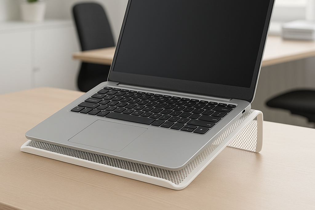 Crafted from durable metal mesh with a sturdy frame, the open-grid design promotes excellent ventilation, allowing heat to dissipate naturally and keeping your laptop cool. The minimalist, low-profile form blends seamlessly into modern offices, home workstations, and professional environments.